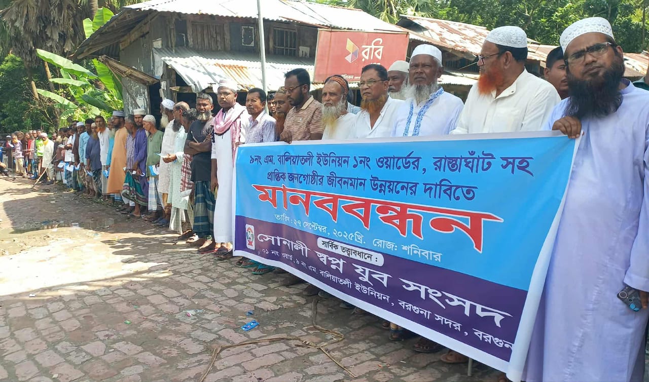 মানববন্ধনর চলাকালে সংগঠনের প্রতিষ্ঠাতা মোঃ রাজিব বলেন, বরগুনা জেলা শহর থেকে ঝিনাইবাড়িয়া-চারাভাংগা-জেলখানা গ্রামের দুরত্ব মাত্র আট কিলোমিটার, ২০২৫ সালে এসেও এলাকায় যদি কেউ অসুস্থ হয় তাহলে তাকে রাস্তার বেহাল অবস্থার কারনে এম্বুলেন্সে হাসপাতালে নেওয়া যায়না। এই এলাকার মানুষ ইন্টারনেট সেবা থেকে বঞ্চিত। কমিউনিটি ক্লিনিকটি ওয়ার্ডের এককোণে স্থাপিত হওয়ায় বেশিরভাগ মানুষ এর সেবা থেকে বঞ্চিত। আমাদের ১৩ দফা দাবি দ্রুত বাস্তবায়ন করতে হবে।