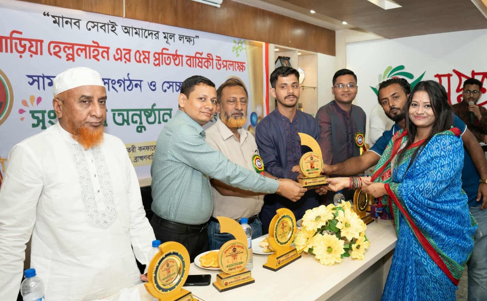 ভাল কাজ করার উদ্দেশ্য কে উৎসাহিত করার লক্ষ্যে Brahmanbaria Helpline আয়োজিত ৫ম প্রতিষ্ঠা বার্ষিকী-তে প্রিয় পরিবার-ব্রাহ্মণবাড়িয়া ও ঐক্যবদ্ধ আশুগঞ্জ কে বিশেষ সম্মাননা প্রদান করেন।