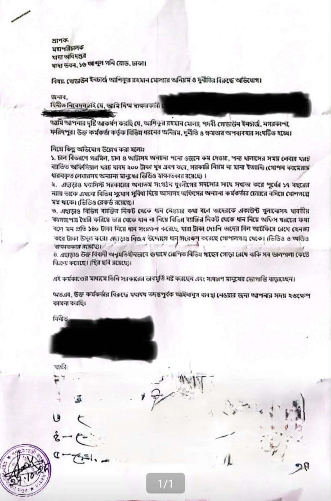 এছাড়াও, আশিকুর রহমান মোল্যা’র বিরুদ্ধে ও এম এস ডিলারদের বরাদ্দকৃত আটা ও চাল নেয়ার সময় টোকেন মানির নামে বেআইনিভাবে টাকা নেয়ার অভিযোগ আছে।এবং বস্তা কেটে বস্তারভেতর থেকে চাল -আটা রাখার অভিযোগ ও তার বিরুদ্ধে আছে।