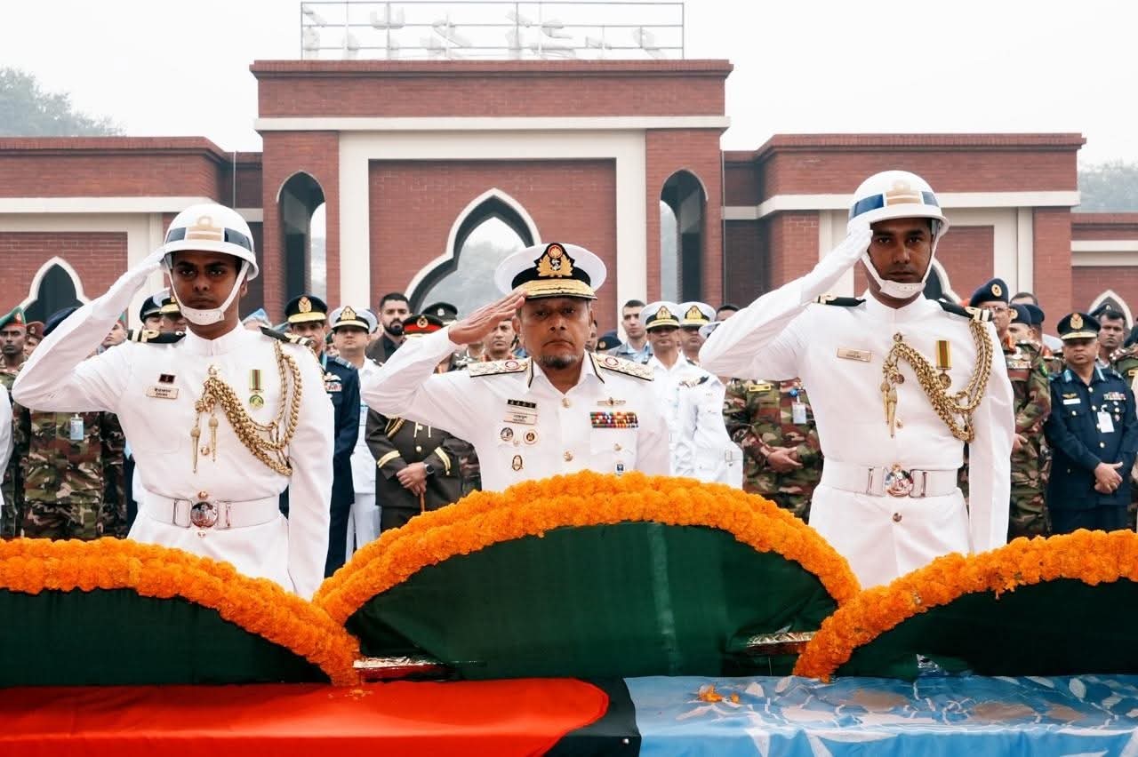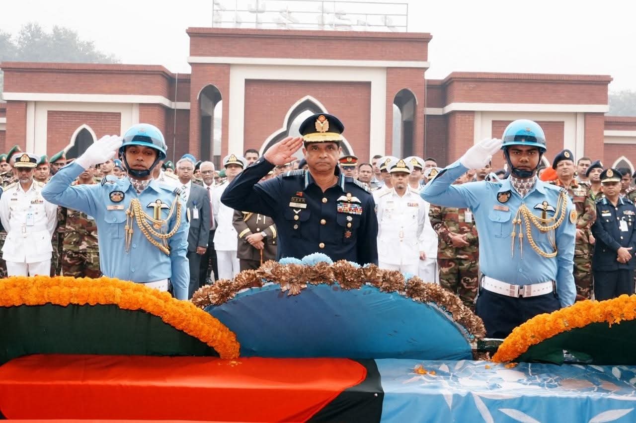এ সময় অন্যান্যদের মধ্যে প্রধান উপদেষ্টার পক্ষে তাঁর সামরিক সচিব শাহাদাতবরণকারীদের প্রতি শ্রদ্ধা নিবেদনের উদ্দেশ্যে পুষ্পস্তবক অর্পণ করেন।