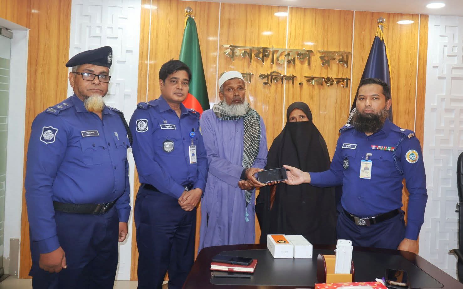 অদ্য ২৮/১/২০২৬ তারিখে বাদী সোহরাবের হাতে লুণ্ঠিত হওয়া মোবাইল ফোনটি প্রদান করেন জেলার অতিরিক্ত পুলিশ সুপার মোঃ মুকিত হাসান খাঁন । এ সময় অতিরিক্ত পুলিশ সুপার (ক্রাইম এন্ড অপারেশন্স) জনাব মোঃ ইব্রাহিম ও তদন্তকারী কর্মকর্তা জনাব মোঃ গোলাম হাফেজ উপস্থিত ছিলেন ।