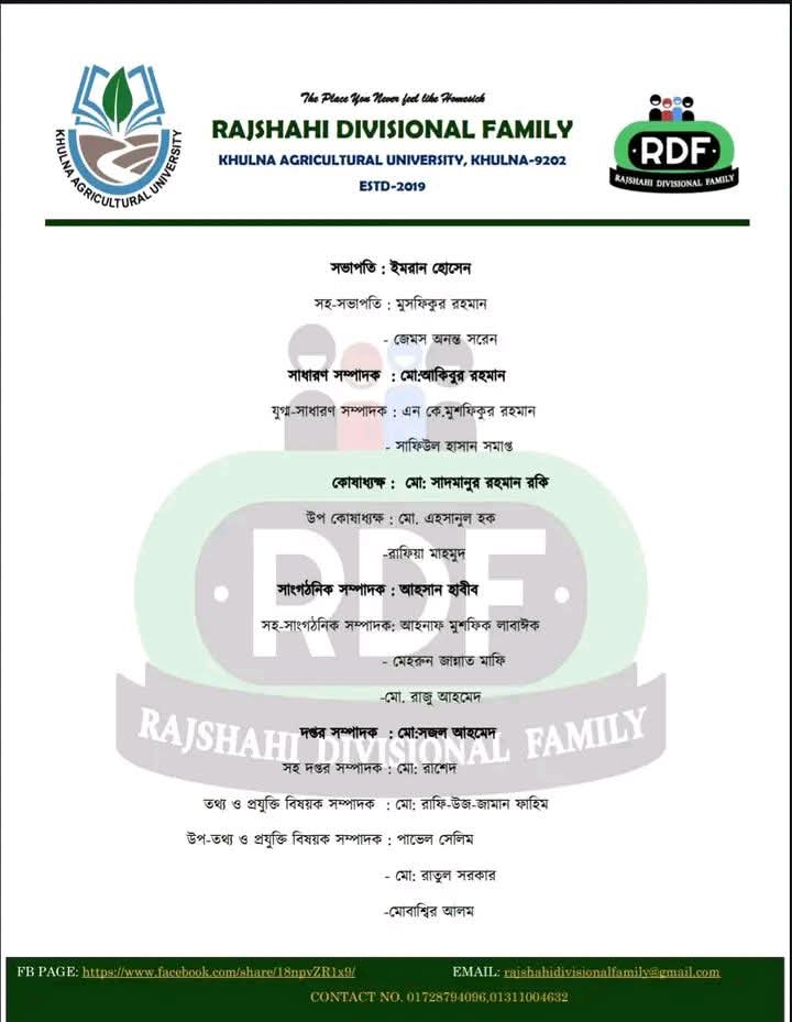 খুলনা কৃষি বিশ্ববিদ্যালয়ে রাজশাহী বিভাগীয় পরিবারের নতুন কমিটি ঘোষণা