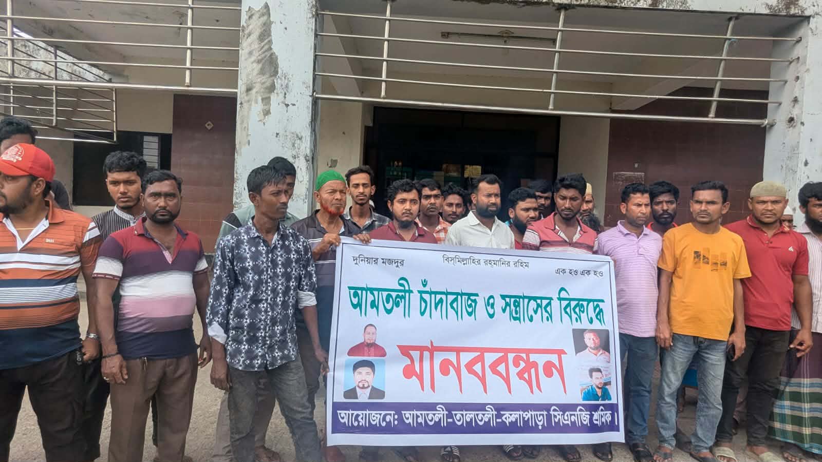 রবিবার দুপুর ১২ টায় আমতলী ডাক বাংলোর সামনে শ্রমিকদের পক্ষে মানববন্ধন শেষে সংবাদ সম্মেলনে লিখিত বক্তব্য পাঠ করেন মো. ফরহাদ ।