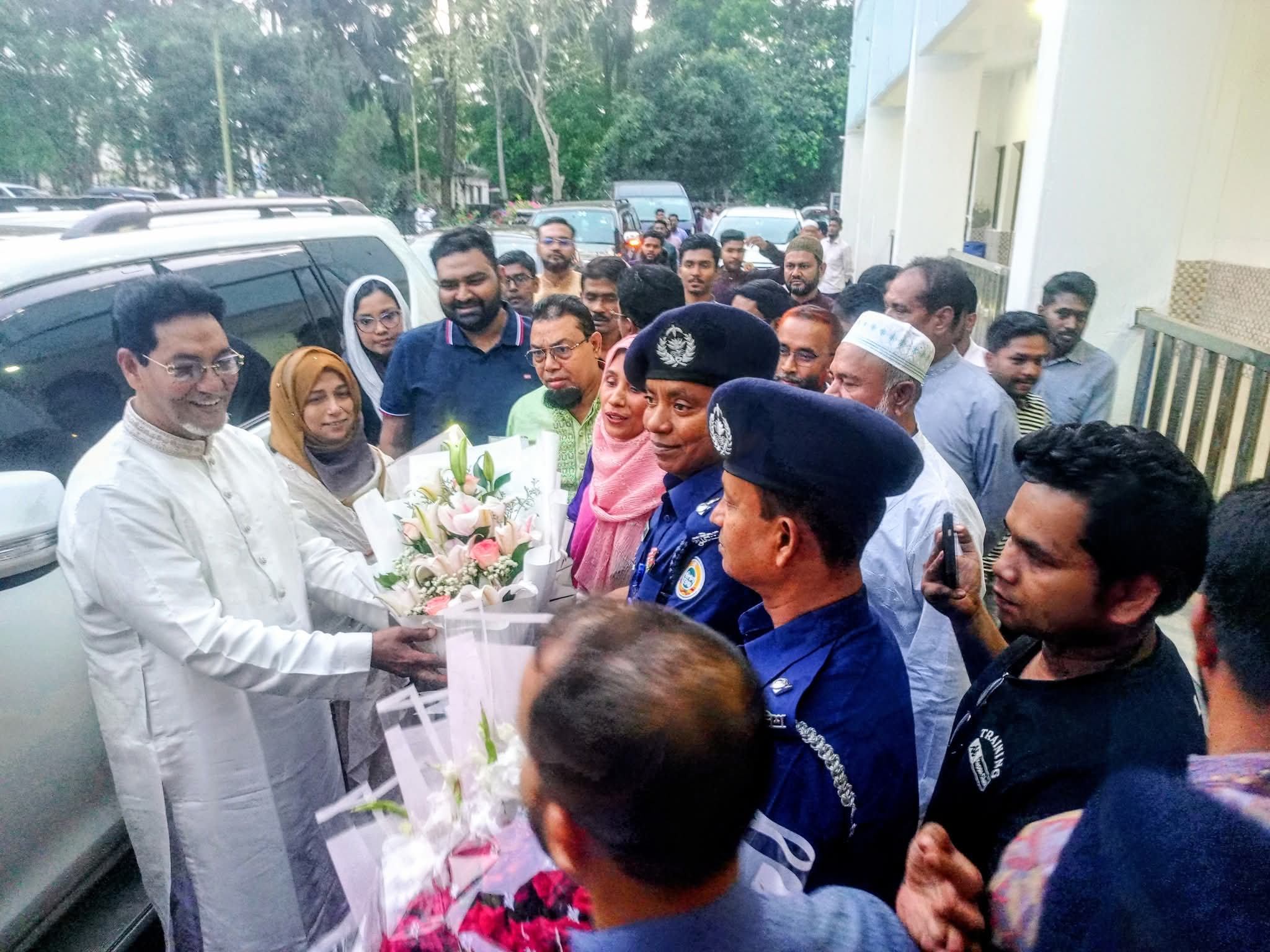 এ সময় উপস্থিত থেকে মাননীয় চীফ হুইপ মহোদয়কে ফুলেল শুভেচ্ছা জানান বরগুনা জেলার সুযোগ্য পুলিশ সুপার জনাব মোঃ কুদরত-ই-খুদা, পিপিএম-সেবা মহোদয় এবং জেলা প্রশাসক, বরগুনা।